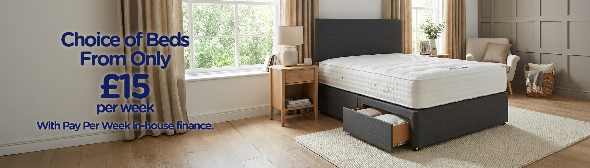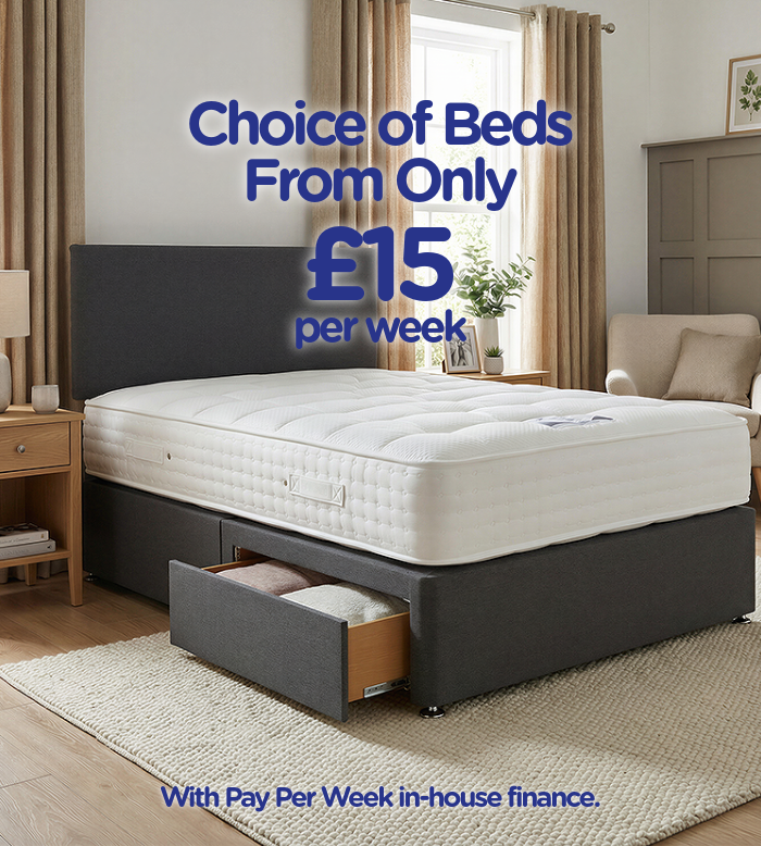 Pay Per Week In-house finance for orders up to £750. Pay Per Week Carpets and Beds limited is an appointed representative of United Carpets (Franchisor) Limited which is regulated by the Financial Conduct Authority (Firm reference number 656323). Credit subject to status. Terms and conditions apply.
