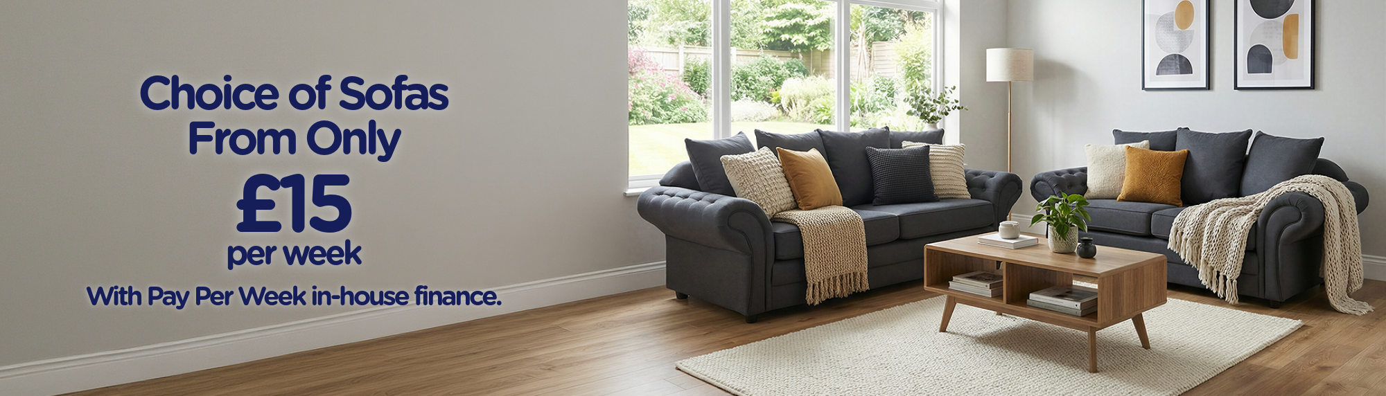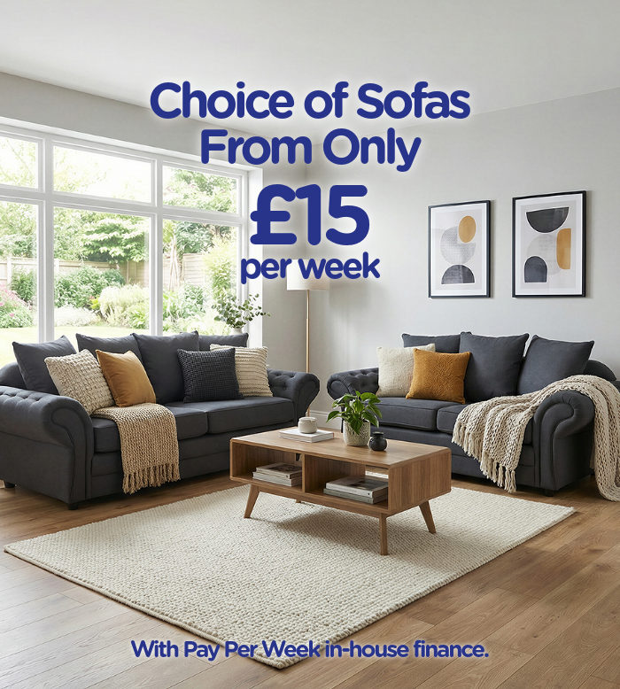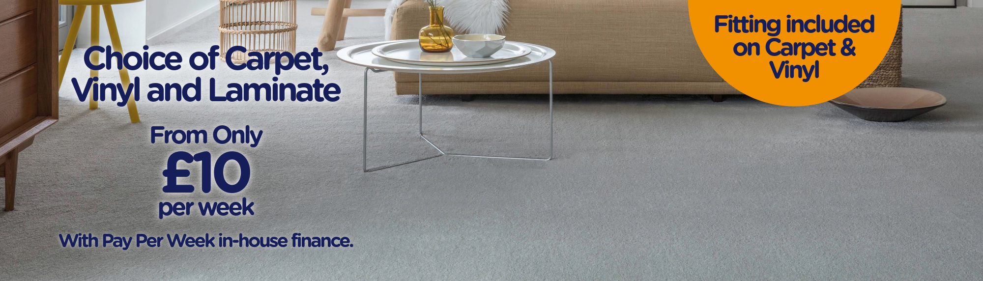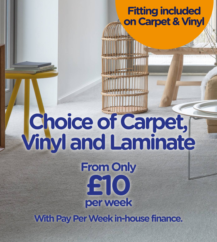 Don’t break the bank with our range of pay weekly flooring, furniture, beds, garden and sofas. We have something for all homes from as little as £10 per week with Pay Per Week In-house finance.