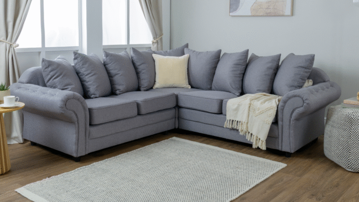 Discover the epitome of luxury and comfort with the Chloe opulent corner seater sofa. Upholstered in premium fabric, this exquisite sofa combines style with functionality to transform any living room into a sophisticated retreat. The soft-filled pillow back cushions provide unparalleled relaxation, while the piped firmer seat cushions offer essential support for long-lasting comfort. The deep-button scroll arms add a touch of classic elegance, complemented by the timeless charm of its classic turned feet. Available in Beige, Charcoal, and Light Grey colors, the Chloe sofa seamlessly integrates into any décor scheme, enhancing your home’s ambiance. Whether you’re lounging solo or entertaining guests, experience the perfect blend of beauty and comfort with Chloe. Explore your options today and redefine your living space!